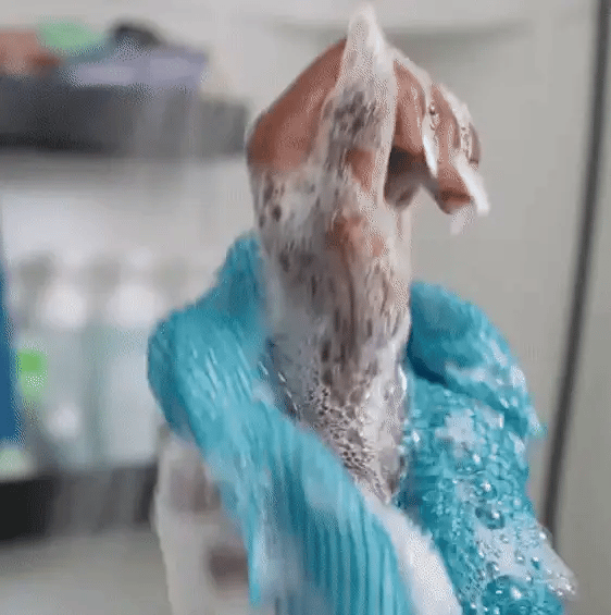 Maak de spons nat, voeg je favoriete zeep toe, en masseer zachtjes in cirkels voor een diepe reiniging.